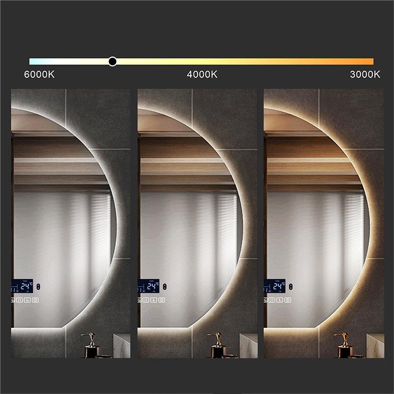 Notre miroir intelligent multifonctionnel avec LED, bluetooth et anti-buée est dotée d’un éclairage LED intégré qui permet une luminosité ajustable pour s’adapter à toutes les situations d’éclairage. Grace au système d’éclairage, vous pouvez régler l’intensité et la température de couleur pour obtenir une lumière chaude ou froide selon vos préférences.