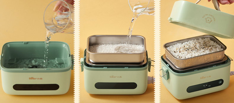 Ce bento chauffant fonctionne à l’eau. Pour réchauffer ou cuir votre plat, il vous suffira de mettre quelques centilitres d’eau du robinet dans le récipient et d’attendre que votre repas se réchauffe ou cuise au bain marie. Étanche et fonctionnel, il vous permettra de cuir de petites quantités de riz ou de pâtes, ou de réchauffer n’importe quel repas !