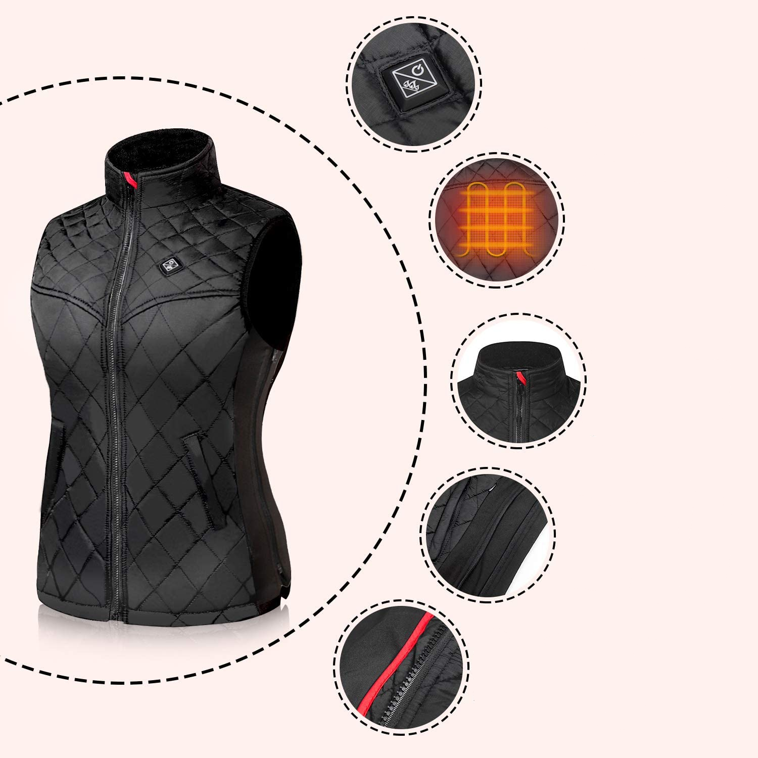 Notre blouson chauffant sans manches décontracté pour femmes est un blouson imperméable conçu pour affronter le mauvais temps. Grâce à son système de chauffage intégré, rien de plus simple que de continuer vos activités extérieures malgré les intempéries. Ce système de chauffage est alimenté par une batterie branchée en USB facilement débranchable.
