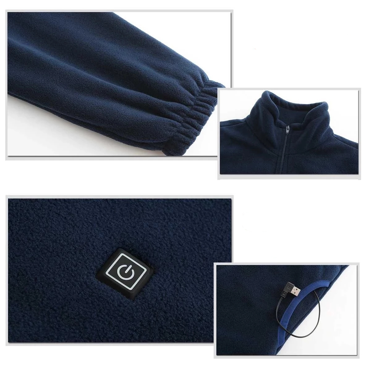Profitez d’une chaleur constante où que vous soyez avec ce pull chauffant. La batterie n’est pas incluse, mais vous pouvez le brancher à une batterie externe, à une prise classique, à votre ordinateur ou dans votre voiture. Le zip sur le devant, rend ce pull très pratique, tout comme ses poches latérales dans lesquelles vous pourrez glisser vos mains pour les réchauffer.