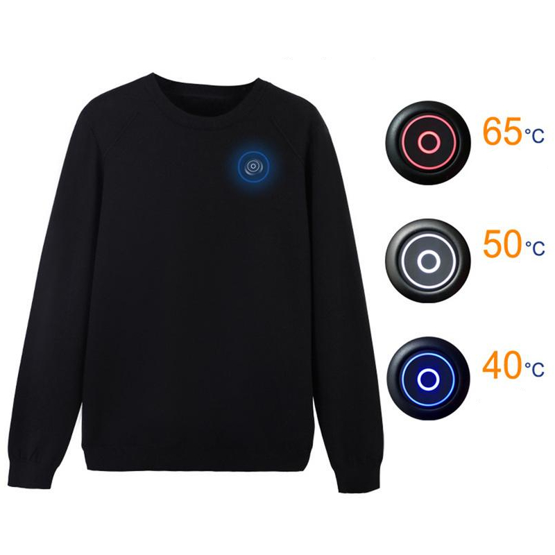 Avec un bouton au niveau du torse, vous pouvez allumer les résistances chauffantes de ce pull polaire et choisir entre trois températures. De 40 à 65 degrés, simplement en appuyant sur un bouton discret, vous sentez tout votre corps se réchauffer et se détendre. Sans surchauffe et sans sensation de brulure.